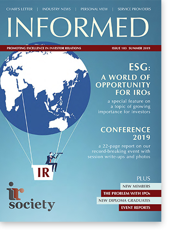 This issue of Informed covers the IR Society's 2019 annual conference and includes a feature section on ESG issues.